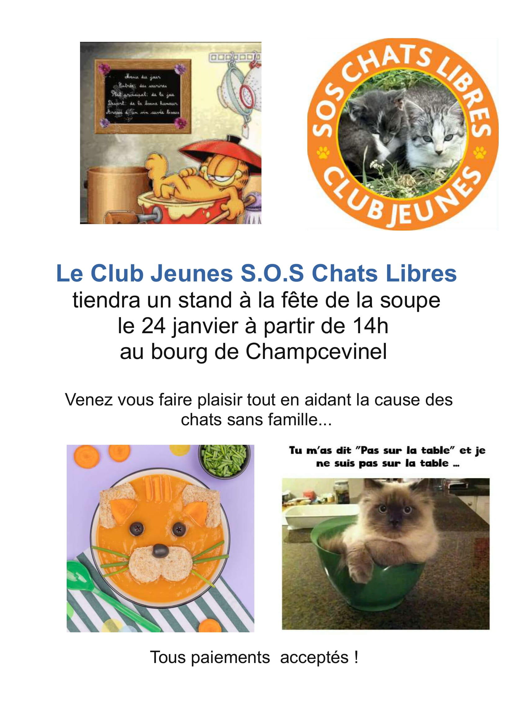Le 24 janvier le stand du Club Jeunes de Sos Chats Libres à la fête de la soupe de Champcevinel …